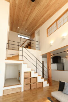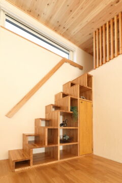 ・ホールにある収納棚は実は・・・ロフトに上がる階段にもなっています