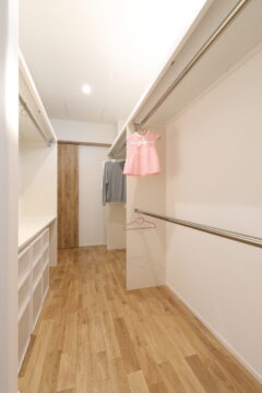 ・シューズクローゼットと背面には上着もかけられるクローゼットがあり、靴や服・バック等もたくさん収納可能