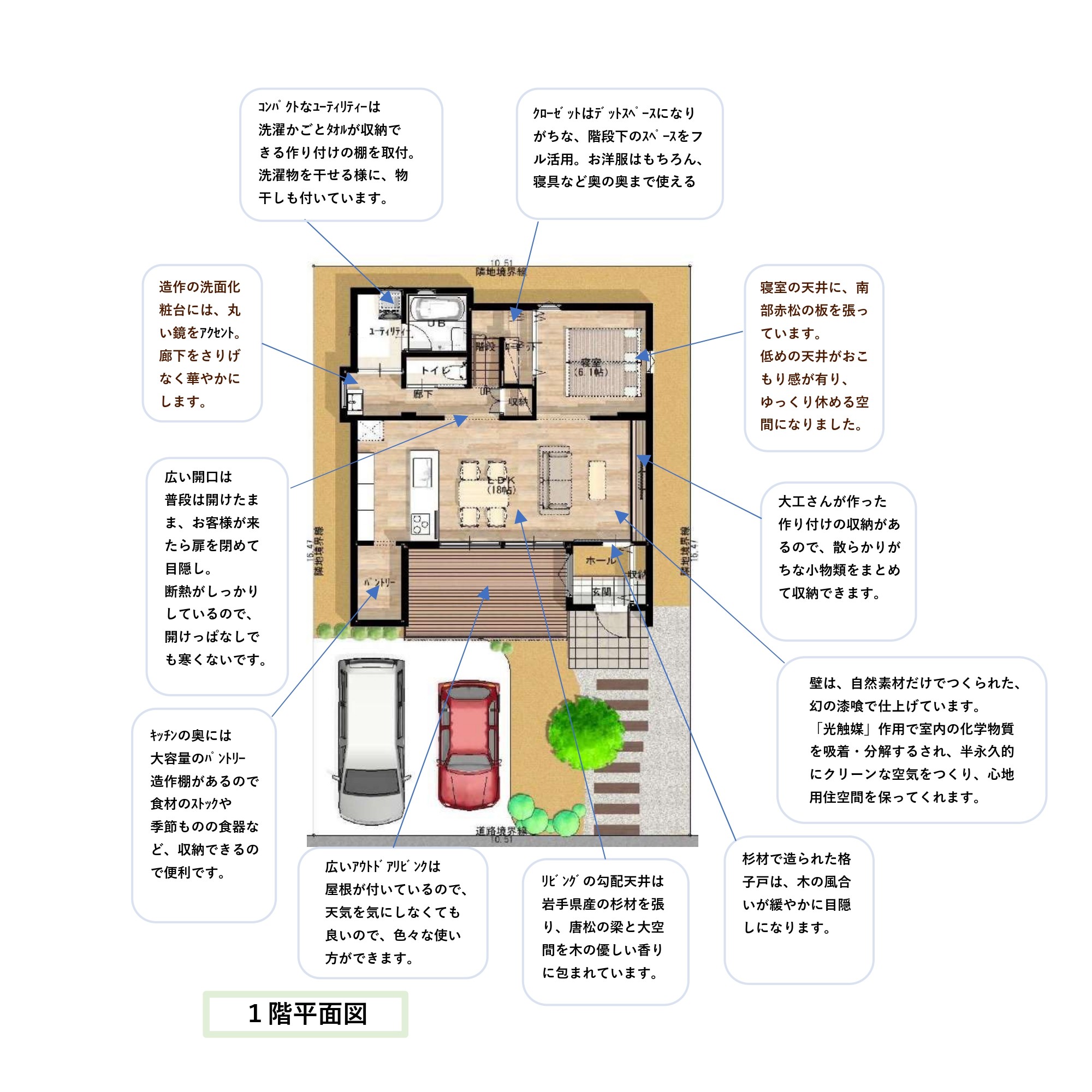 岩手県産の木材をふんだんに使用し、熟練の大工の技で見えないところまで丁寧に造り上げました。