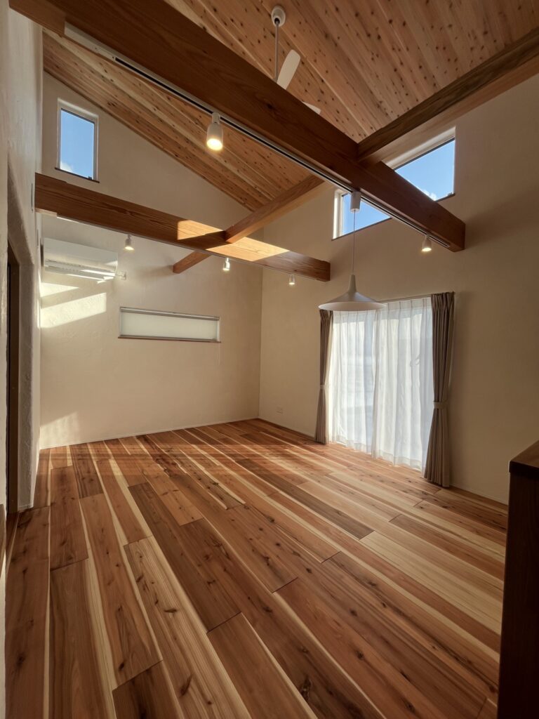 見上げたときに感じる木の存在感と、空間全体に広がるやさしい木の香りが印象的です。