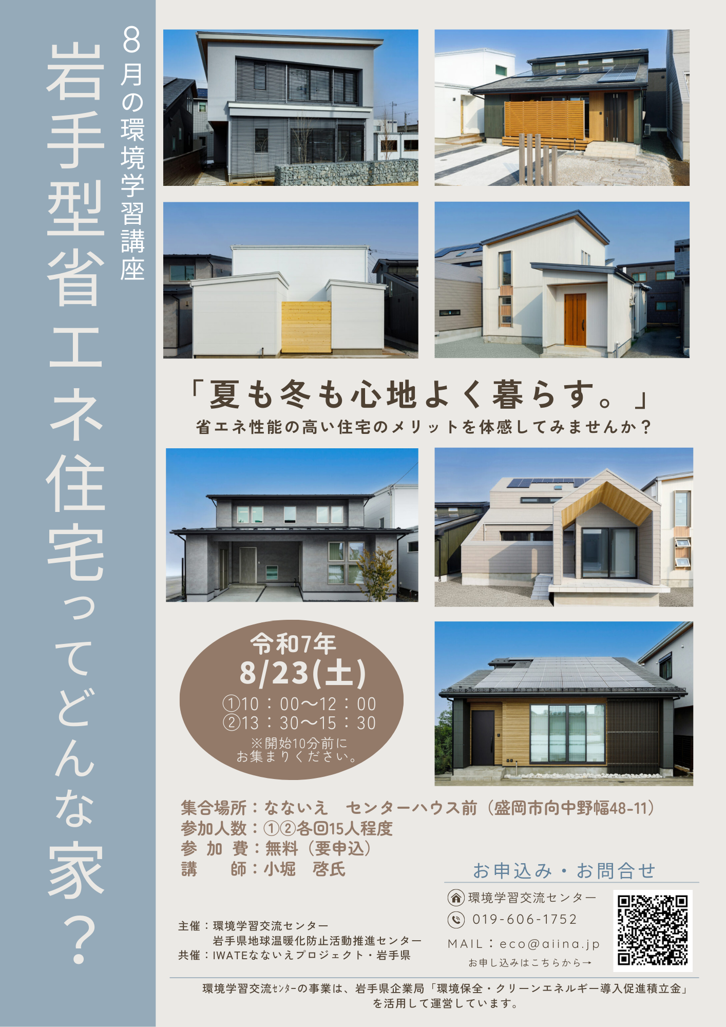 8月の環境学習講座「岩手型省エネ住宅ってどんな家?」を開催いたします